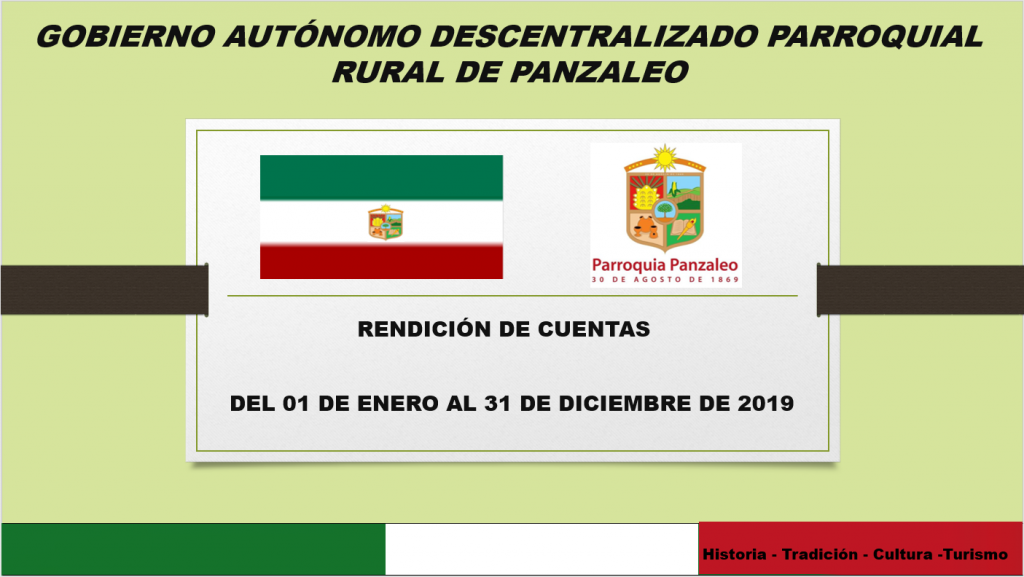 El G.A.D. Parroquial Rural de Panzaleo invita a participar de la deliberación del informe final del proceso de Rendición de Cuentas del año 2019. A realizarse el viernes 28 de agosto de 2020 a partir de las 15:00 horas a través de la plataforma digital ZOOM .